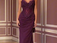 The fitted silhouette is crafted to contour and flatter, flowing seamlessly into a smooth, floor-length Stretch Mesh Skirt that enhances curves while allowing effortless movement. Structured boning through the bodice provides confident support, while the adjustable Lace-Up Back ensures a custom, sculpted fit from every angle.