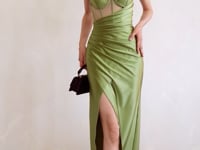 - Corset lace-up back & bold leg split