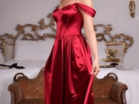 Falling into a graceful A-line silhouette, the voluminous silky satin skirt adds movement and sophistication with every step. Detachable off-the-shoulder sleeves give you two stunning looks in one—romantic and ethereal, or sleek and contemporary.