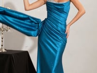 Soft Ruched Draping wraps the bodice and hip to create a flattering, hourglass silhouette, while the fitted Mermaid Shape elongates the figure for a sleek, red-carpet finish. Crafted from luminous Glitter Stretch Fabric, this gown offers both comfort and contour, moving effortlessly as you walk.