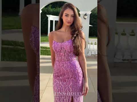This sleek fitted silhouette features a sculpted strapless scoop neckline, crafted to enhance the décolletage while celebrating the body’s natural curves. The gown is adorned in fully beaded sequin fabric with gradient tones, creating a liquid-like sparkle effect that flows seamlessly from bodice to hem.