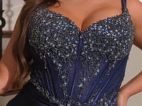 The VIVIAN Curve gown is crafted to celebrate and sculpt curves, featuring a glamorous Mermaid silhouette with a sheer Corset bodice that delivers both structure and standout sparkle.